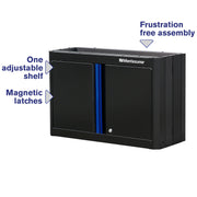 The innovative folding design on our 2-door wall cabinet makes it easy to transport and assemble. Combine with one pegboard back wall and posts, and one base cabinet – the wall cabinet attaches to the top of the posts for even easier installation.
