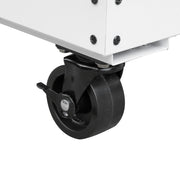 - Four 5” x 2” casters (2 rigid, 2 swivel/locking) and side push handle for easy rolling and stable positioning