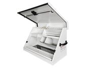 Optimize your workspace with the Montezuma 30 x 15 in. Triangle® Toolbox and 31" 2-Drawer Utility Cart Combo in White—the ultimate utility cart combo for garages, workshops, sheds, or professional repair shops. This rugged and efficient tool storage solution offers both visibility and security, helping you stay organized and productive.