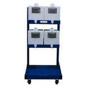 Each of the 4 (15 gallon) Rack Tanks are secured onto a steel powder-coated shelf (each shelf has a load capacity of 540 lbs.), and the steel system frame features 4" casters for point-of-use dispense to industrial, chemical and janitorial fluid applications.
