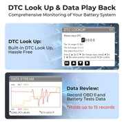 This OBDII code reader also works as a battery tester, offering even more capabilities to its users. The battery testing function is also applicable for 12V Lead-Acid batteries. Analyze a battery's cranking and charging systems and perform various tests on 12V/24V Lead-Acid batteries. This way, users can obtain information on cranking and charging battery systems of heavier vehicles.