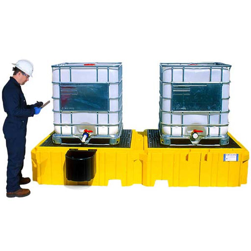 Save money by storing two IBC tanks side-by-side on the Ultra-Twin IBC Spill Pallet. The large, 535-gallon spill containment sump meets EPA and SP...