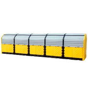These units provide one large, covered, spill containment storage area for as many drums as you have space for (we have part numbers for systems up to 20 drums but you can use the extender kits to make them as large as you need).